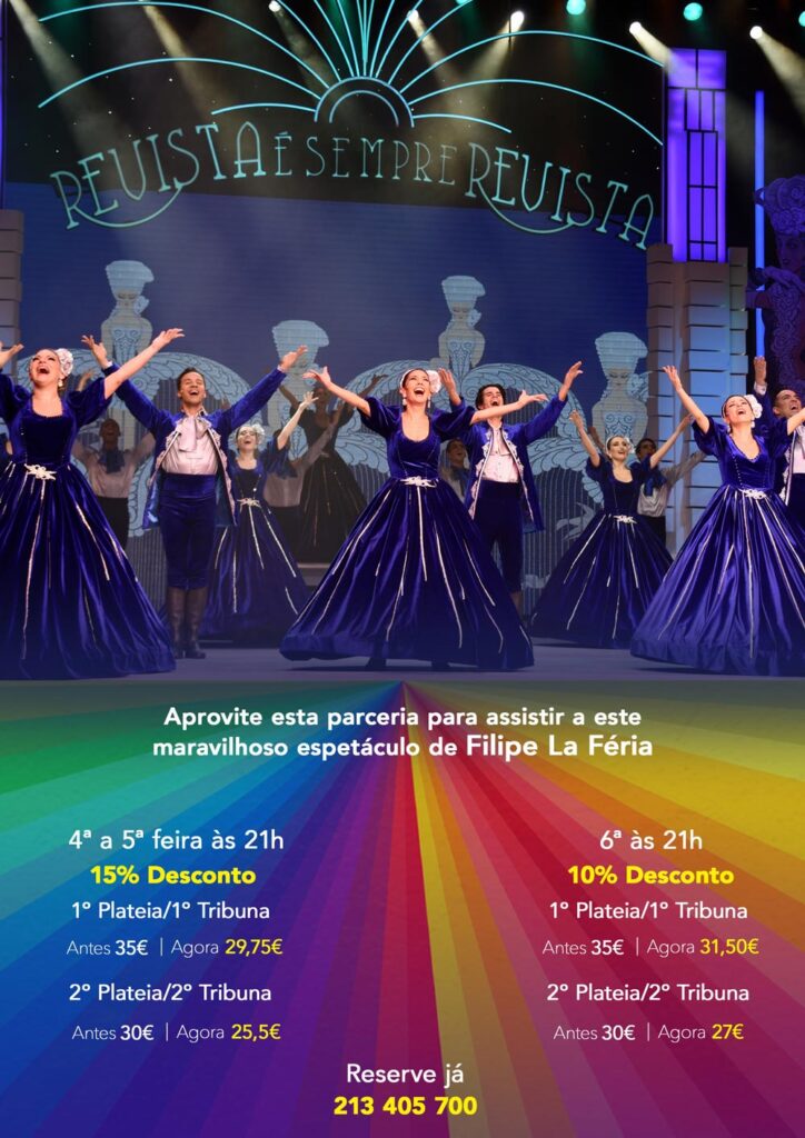 O Clube EDP estabeleceu um protocolo, com descontos, para o espectáculo, Revista é Sempre Revista de Filipe La Féria no Teatro Politeama em Lisboa
