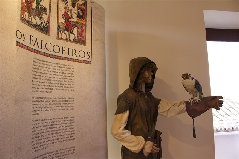Neste espaço podemos observar o quotidiano das aves em cativeiro, peças multimédia, filmes, pintura, fotografia e jogos virtuais. Durante a visita descobrimos o mundo da Falcoaria desde o Neolítico até aos nossos dias, os motivos que conduziram ao aparecimento desta arte, bem como, a sua importância na Vila de Salvaterra de Magos, que desde sempre reuniu condições favoráveis para a realização de grandes caçadas. É possível também assistir ao treino de aves e demonstração de voo em liberdade, onde as aves mostram toda a sua perícia, na tentativa de capturar a “falsa presa” lançada pelos falcoeiros.