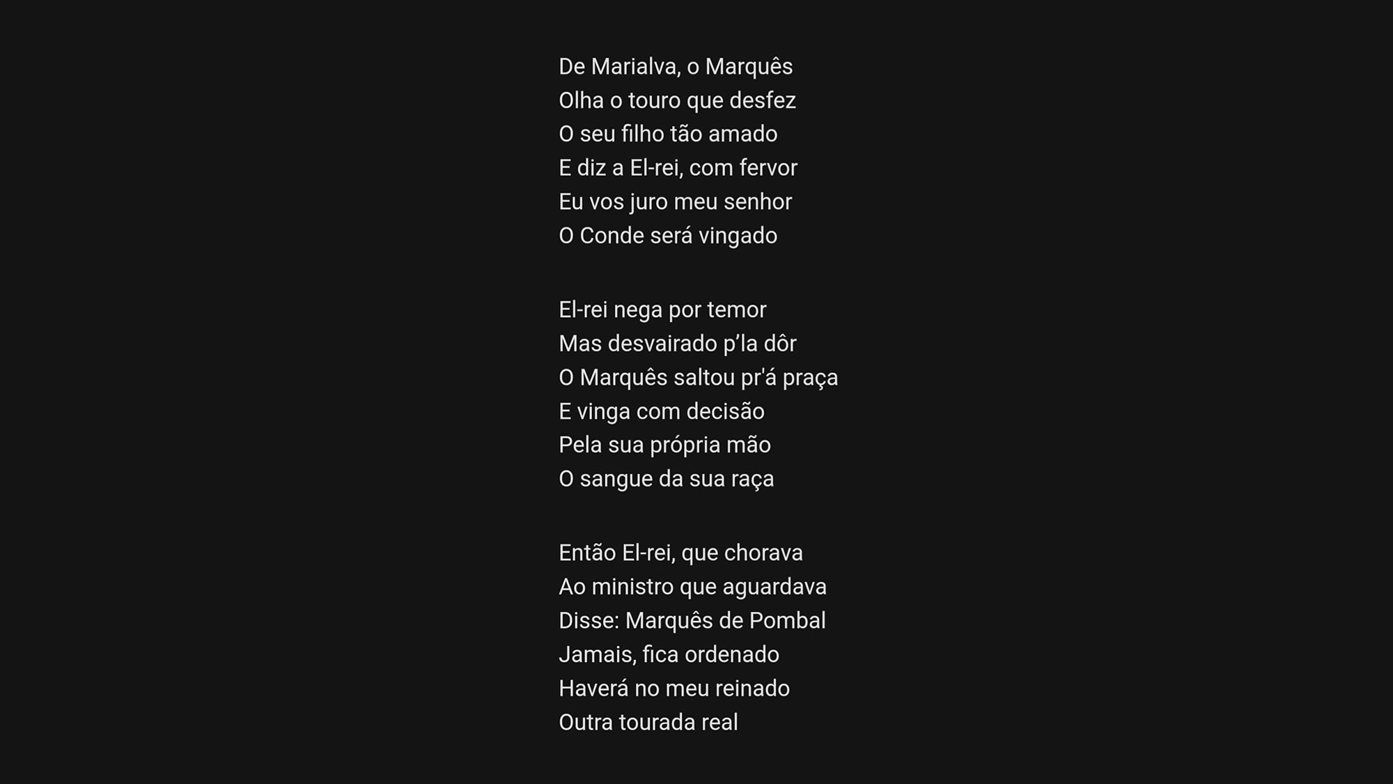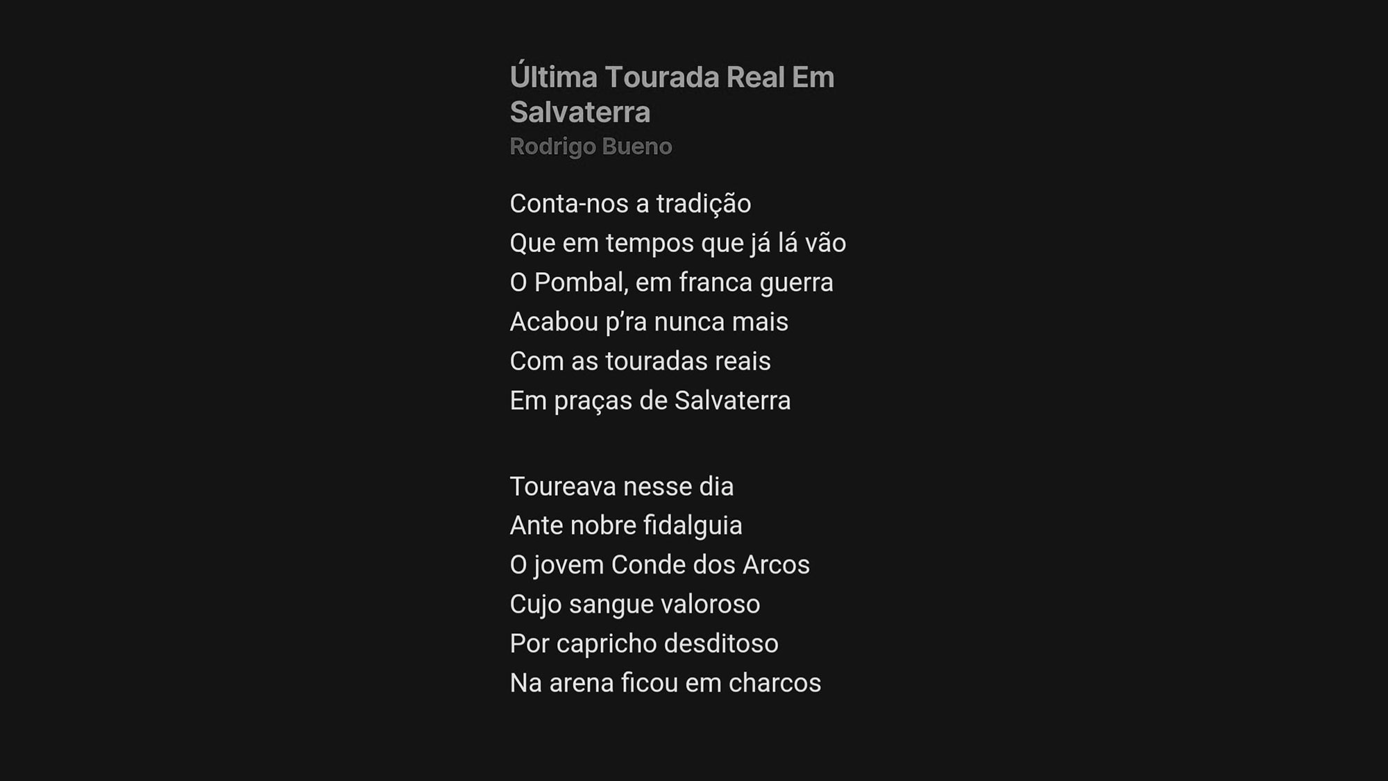Esta tragédia também foi cantada pelo fadista Rodrigo, cuja letra descreve o episódio que levou à “Última Tourada Real em Salvaterra”e que aqui partilhamos.