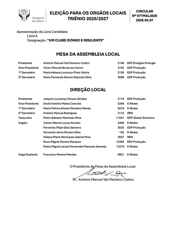 Lista A | Designação: “Um Clube Idóneo e Resiliente”