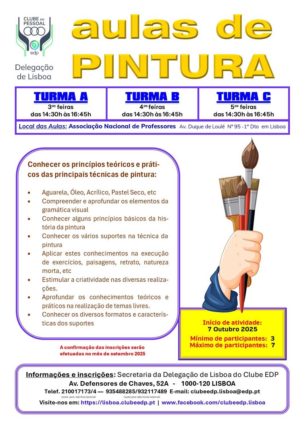 As inscrições nos Cursos de Pintura estão esgotadas! As aulas tiveram início em outubro na Associação Nacional dos Professores em Lisboa.