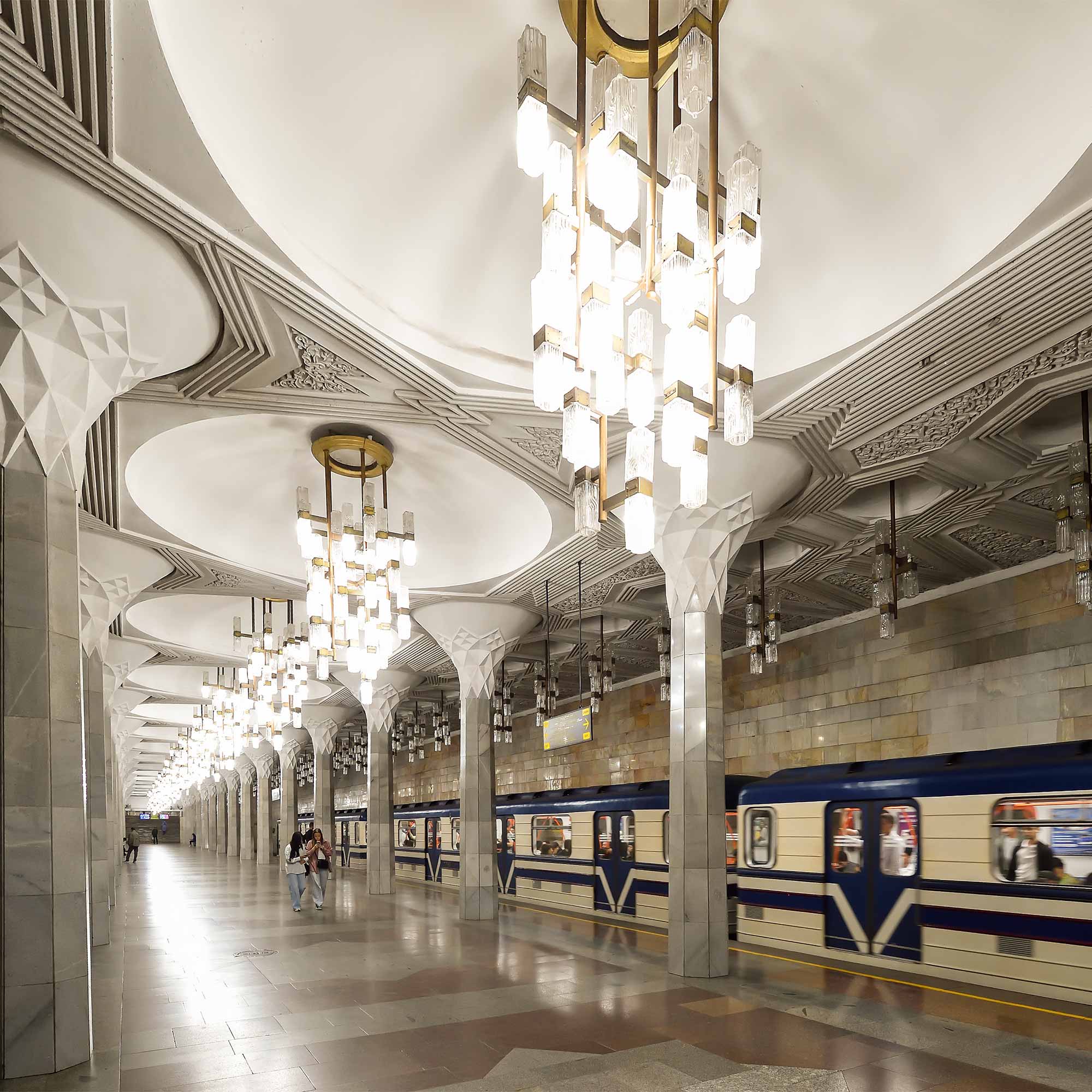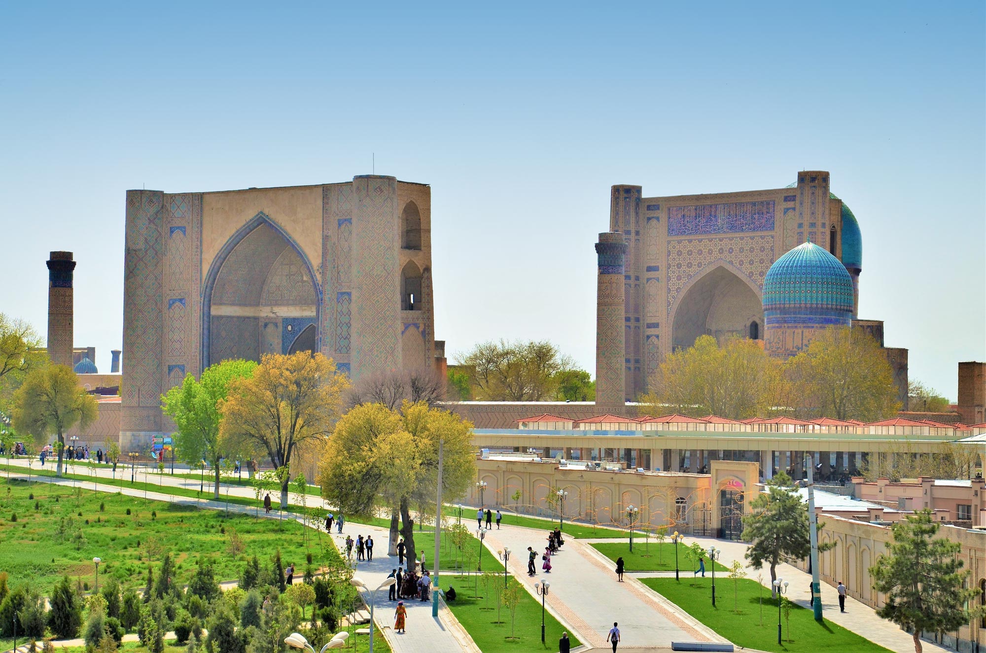 Seguimos viagem para Bukhara, património UNESCO, através do deserto Kyzyl-Kum, ao longo da antiga Rota da Seda, passando pelo Rio Amu Darya, um dos principais da Ásia Central. Visitamos o Mausoléu dos Samánidas e a cidadela Ark e no coração da cidade, o impressionante conjunto Poi-Kalon, a Mesquita Kalon, a Madraça Miri-Arab e o complexo Lyabi-Hauz. Passeamos pelos antigos bazares cobertos, onde outrora fervilhava o comércio. Aprendemos a preparar Plov, o prato nacional, numa casa de família tradicional e jantamos com os nossos anfitriões uzbeques. Continuamos a nossa descoberta pelas maravilhas de Bukhara e arredores: na cidade — Chor Minor, Chashma Ayub, Mesquita Bolo-Hauz, Madraças de Ulugbek, Mesquita Magoki Attori; nos arredores — o complexo memorial de Bahauddin Nakshbandi e o Palácio Sitorai Mokhi-Khosa. Prosseguimos viagem, de comboio, para Samarcanda, uma das joias da Rota da Seda e Património UNESCO, famosa pela arquitetura azul e imponente da Praça Registan e da necrópole Shah-i-Zinda.