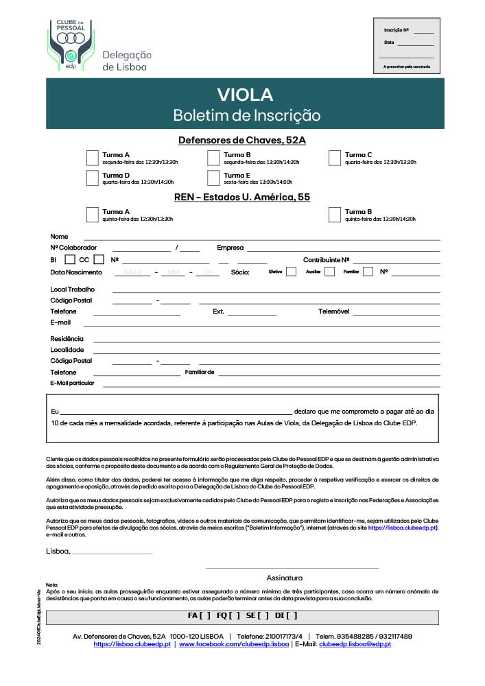 Aulas de Viola, nas instalações do Clube EDP e REN com início em outubro