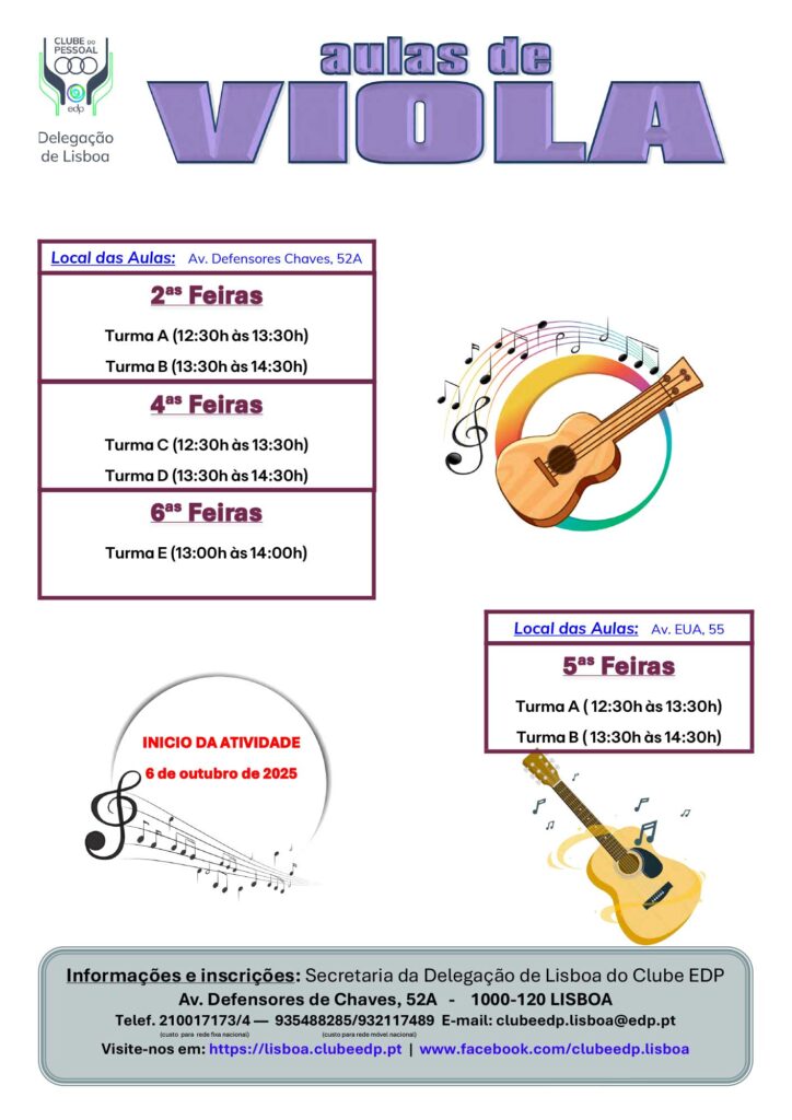 As Aulas de Viola, tiveram início esta semana, nas instalações do Clube EDP Lisboa, e no edifício REN da Av. EUA! Inscrições abertas!